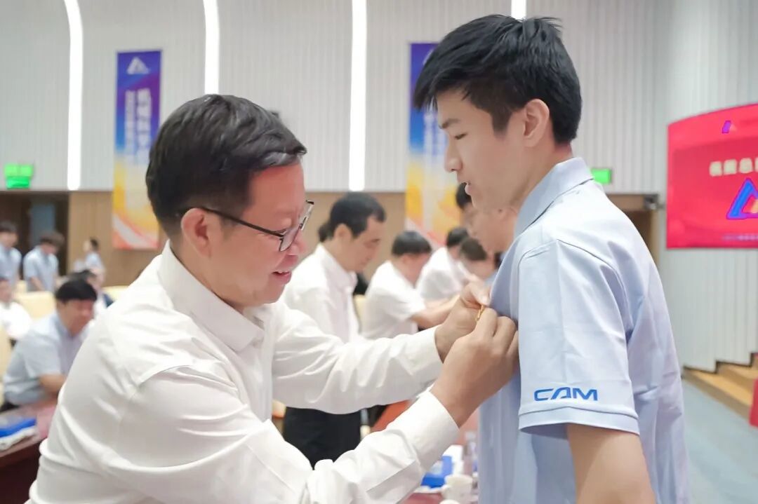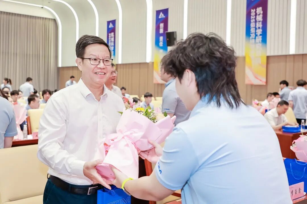 典禮上,王德成、李玉鑫及導(dǎo)師代表共同為新生佩戴總院徽章。這枚徽章不僅象征著中國機(jī)械總院人的身份,更承載著“以提升中國裝備制造水平為己任”的使命與榮光。優(yōu)秀導(dǎo)師獎(jiǎng)、最受歡迎教師獎(jiǎng)、新生入學(xué)獎(jiǎng)學(xué)金和優(yōu)秀課程獎(jiǎng)獲獎(jiǎng)代表上臺領(lǐng)獎(jiǎng)。新生代表手捧鮮花向?qū)焸儷I(xiàn)上誠摯敬意與節(jié)日祝福,表達(dá)莘莘學(xué)子的感激之情。